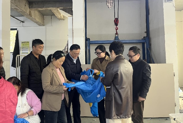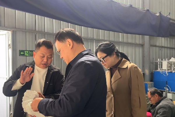 在劳楼行政村走进返乡创业纺织服务企业的生产车间,机器运转声此起彼伏,工人们正忙着分拣、加工纺织原料。张洪纲主任与企业负责人并肩查看生产流程,询问订单数量、用工成本、带贫成效等情况,当听到 “企业+车间+农户”模式,已带动35余户村民实现“家门口就业”,并让15户老人居家“翻袜子”“不出门增收”时,他嘱咐劳楼村第一书记李雯霞要牢牢抓住乡村振兴的政策机遇,积极协助返乡创业人员扩大生产规模,协调村里闲置场地用于车间扩容,优先吸纳脱贫户、残疾人、家庭劳动力,拓宽就业覆盖范围,让村级企业真正成为带动村民稳定增收的“主力军”。